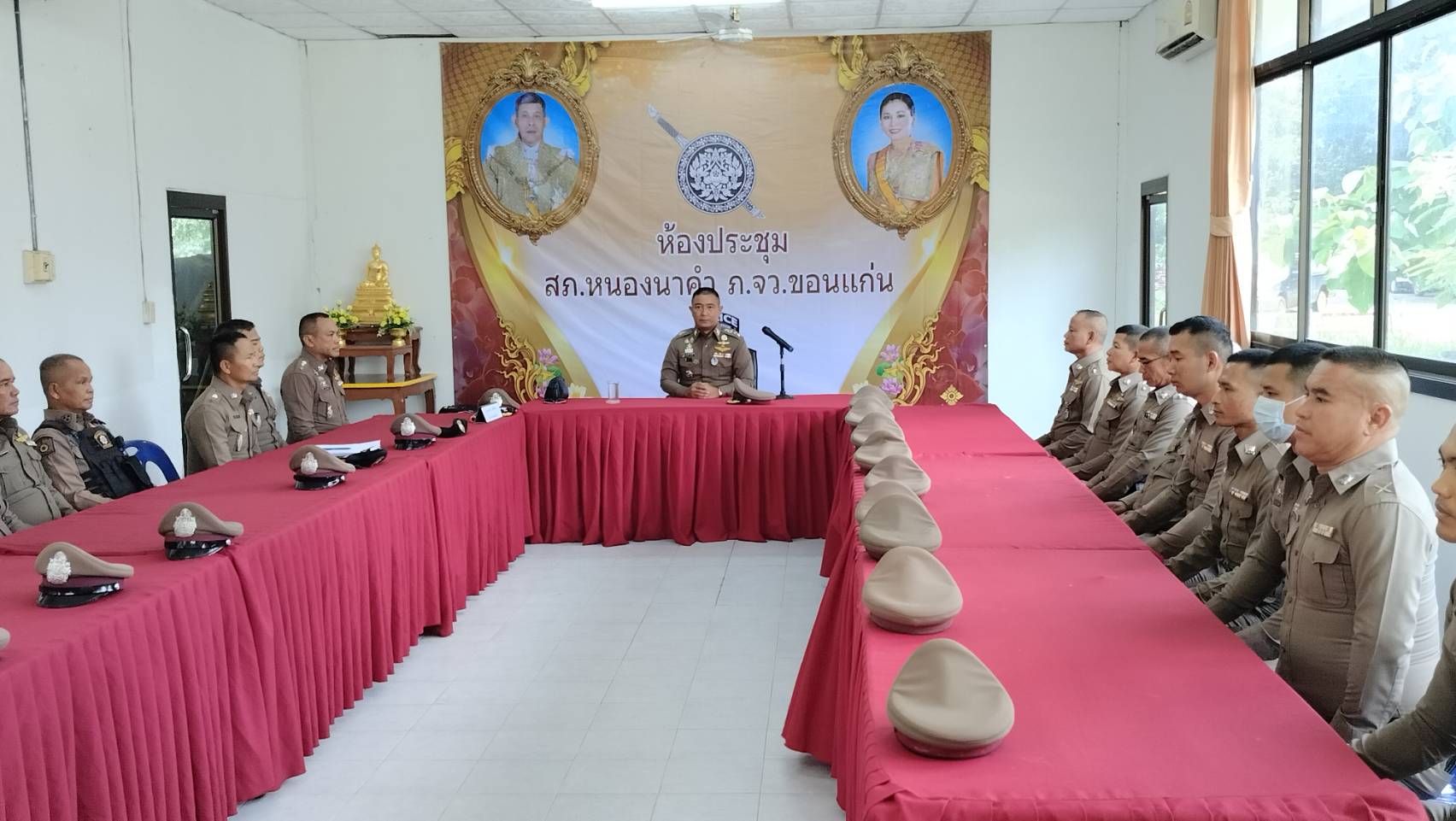 พ.ต.อ.สุขกวี ศรีอิสาณ ผกก.สภ.หนองนาคำ เรียกรวมแถวข้าราชการตำรวจ เพื่อรอรับคณะตรวจราชการจจเรจังหวัด โดยมี พ.ต.อ.สุรศักดิ์ มโนทัย รอง ผบก.ฯ ภ.จว.ขอนแก่นเป็นประธานในการตรวจราชการ ณ ห้องประชุม สภ.หนองนาคำ 10 มิถุนายน 2568 โดย admin / ข่าวประชาสัมพันธ์,ข่าวกิจกรรม,ข่าวประชาสัมพันธ์ FacebookFacebookXXLINELine
