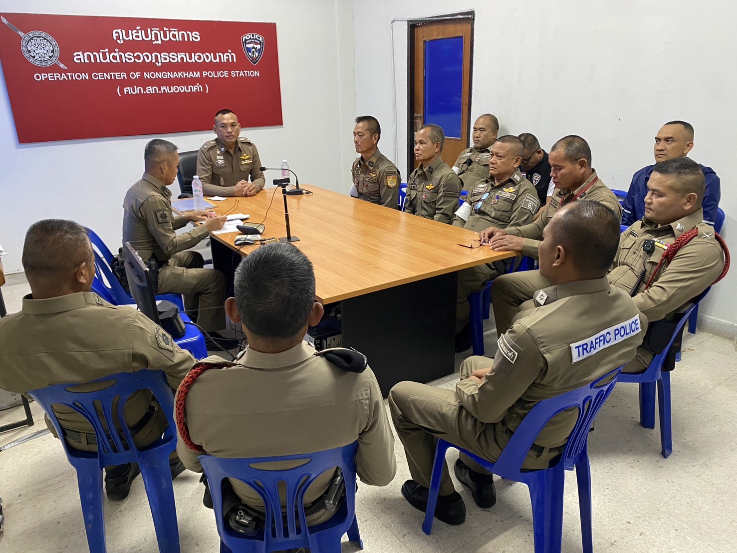 เข้าร่วมประชุมชี้แจ้งเกี่ยวกับการตั้งจุดบริการประชาชนในช่วงเทศกาลสงกรานต์ พร้อมกำชับให้เจ้าหน้าทุกนายให้ปฏิบัติหน้าที่บริการประชาชนอย่างเต็มที่โดยไม่หวังผลตอบแทนใดๆทั้งสิ้น ณ ห้องประชุม สภ.หนองนาคำ